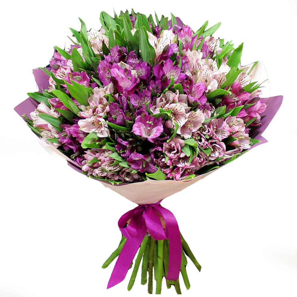 Крафт – 1 шт.Атласная лента – 1 шт.Альстромерия фиолетовая – 21 шт.