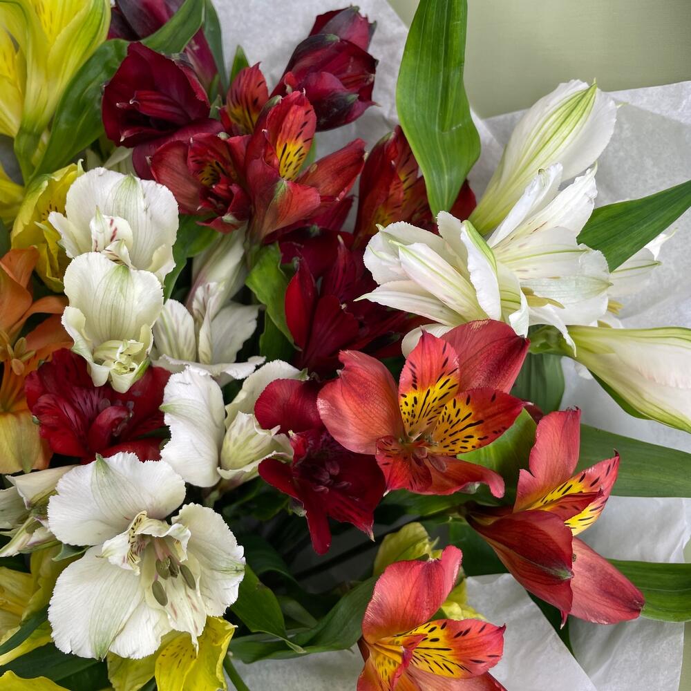 Очень стойкий букетик из разноцветных альстромерий. Подойдёт для любого случая!