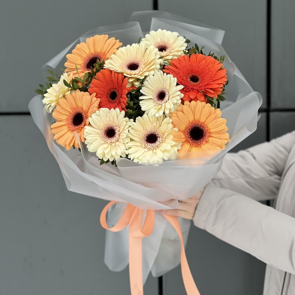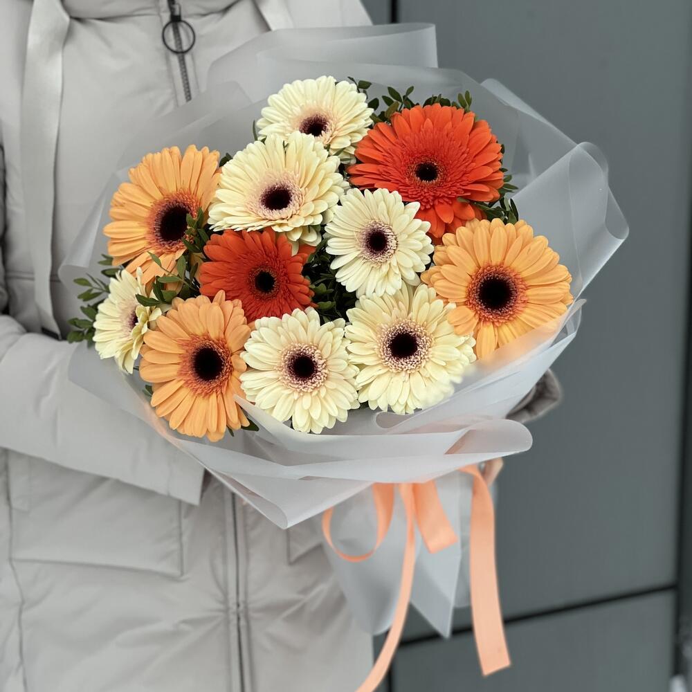 Писташ – 6 шт. Гербера – 11 шт. Оформление – 1 шт.