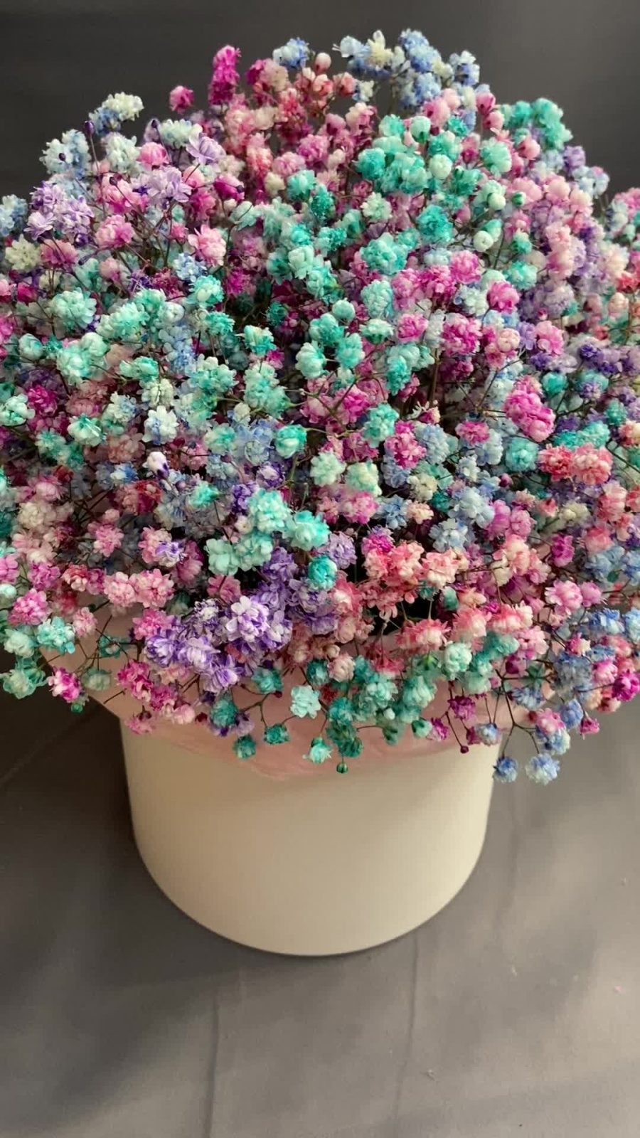 “Сиреневый туман” – композиция из гипсофилы в шляпной коробке
