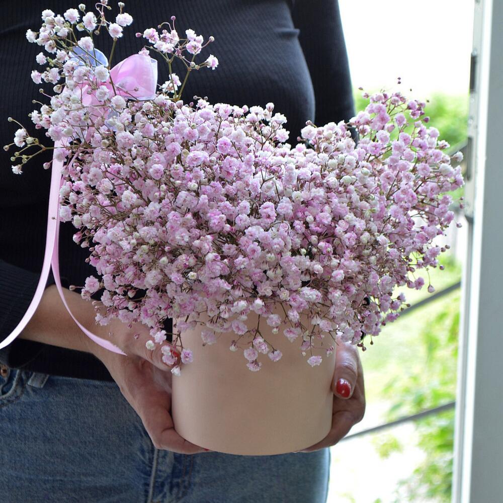 Необычный букет из гипсофилы в коробке