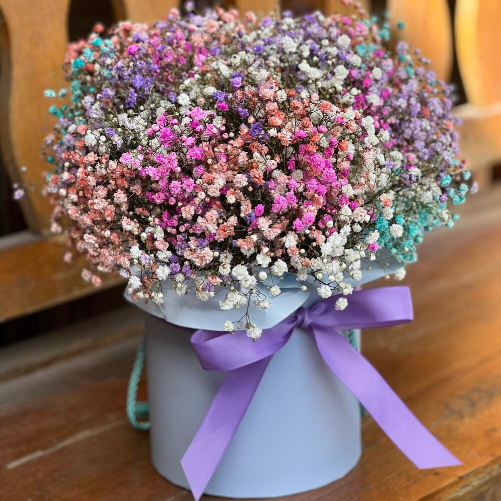 Нежная композиция из радужной голландской гипсофилы в коробочке порадует ваших близких по поводу и без