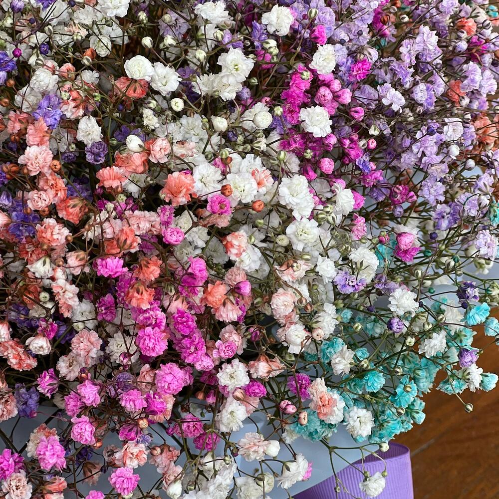 Нежная композиция из радужной гипсофилы