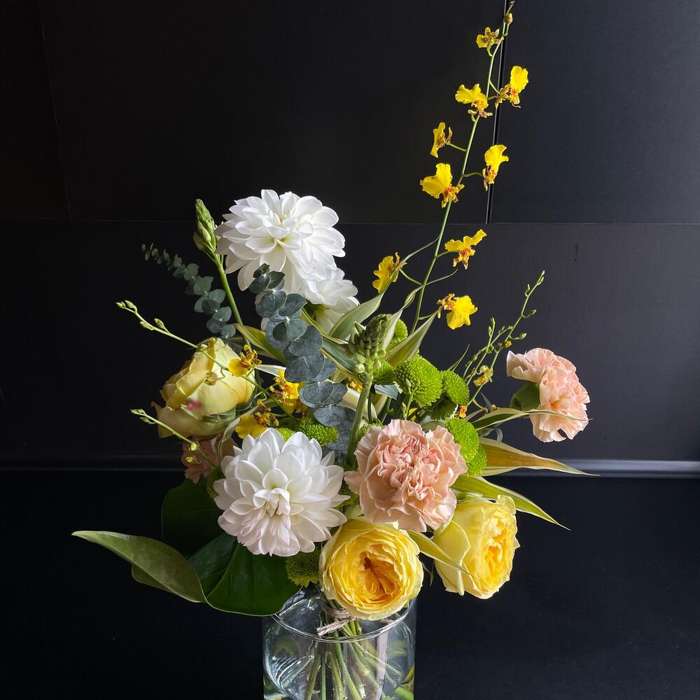 15 диантусов, лимониум и пальма