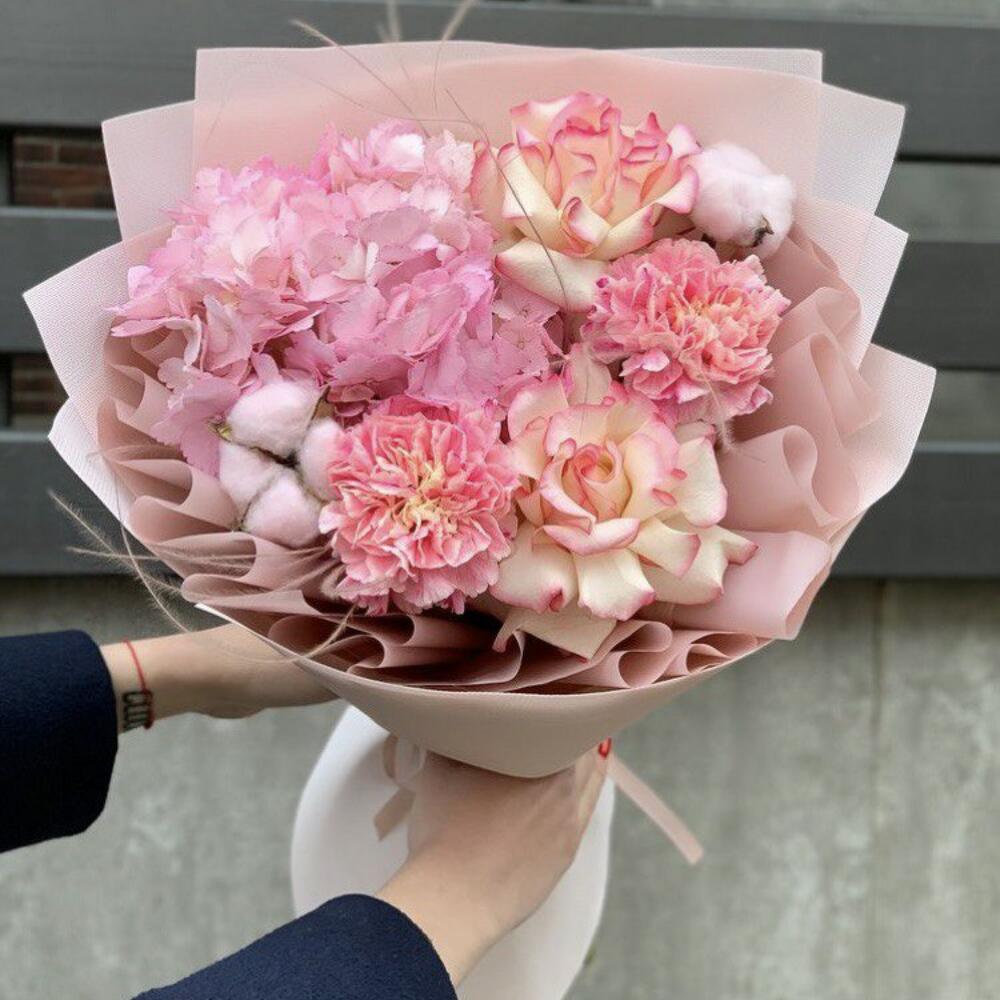 Гвоздики, Кустовые розы, Пионовидные розы, Розы