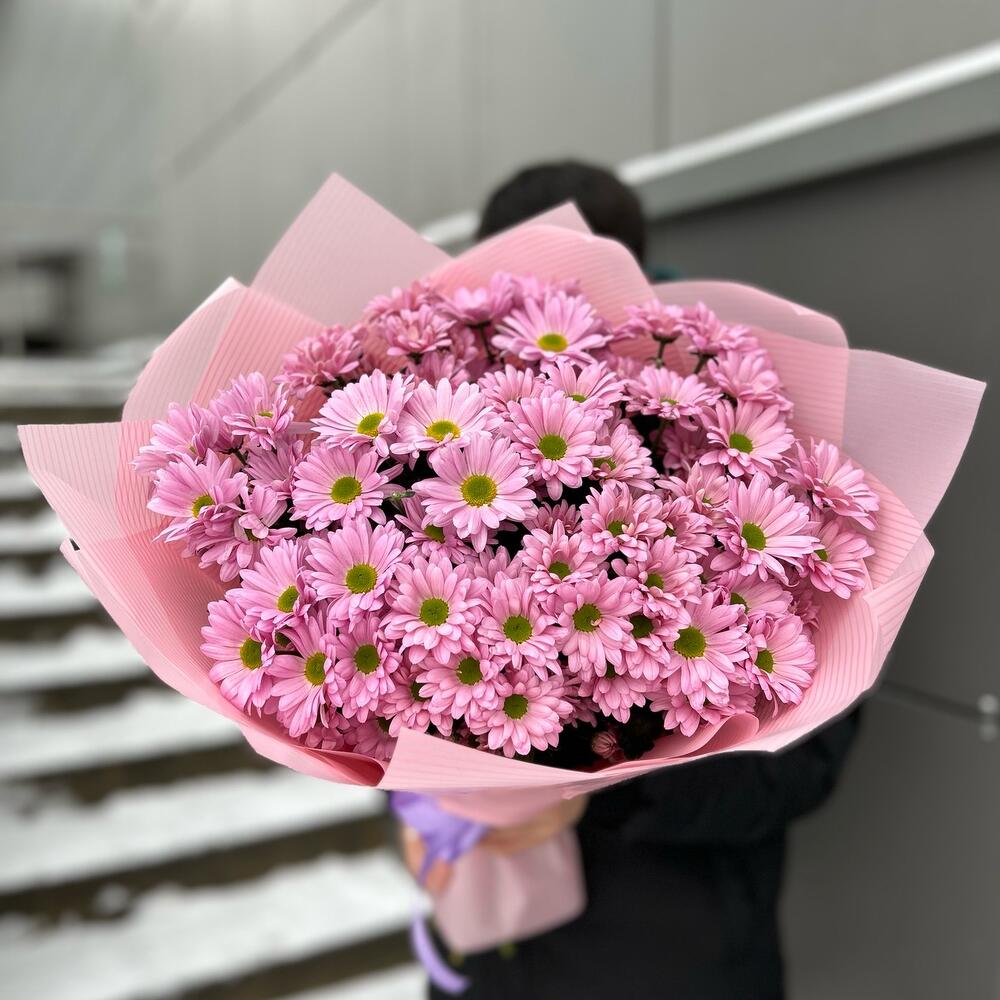 Букет из 11 веток ромашковых хризантем . Количество ромашек в букете может достигать 101 штуки.