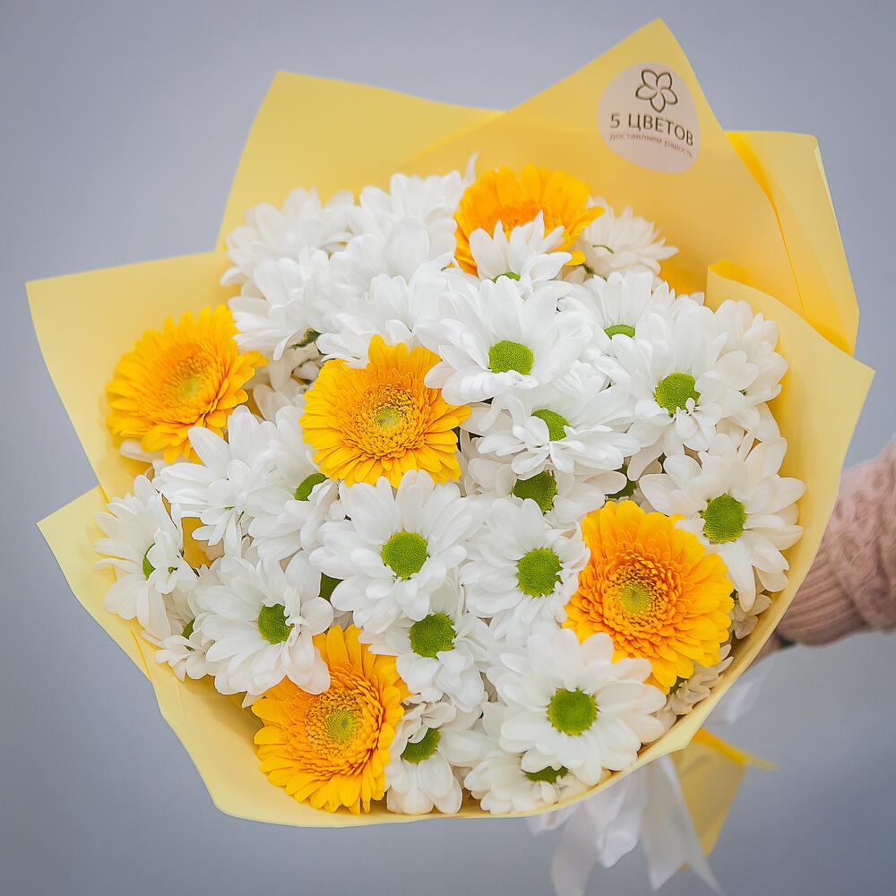 Букет из хризантемы и желтых гербер