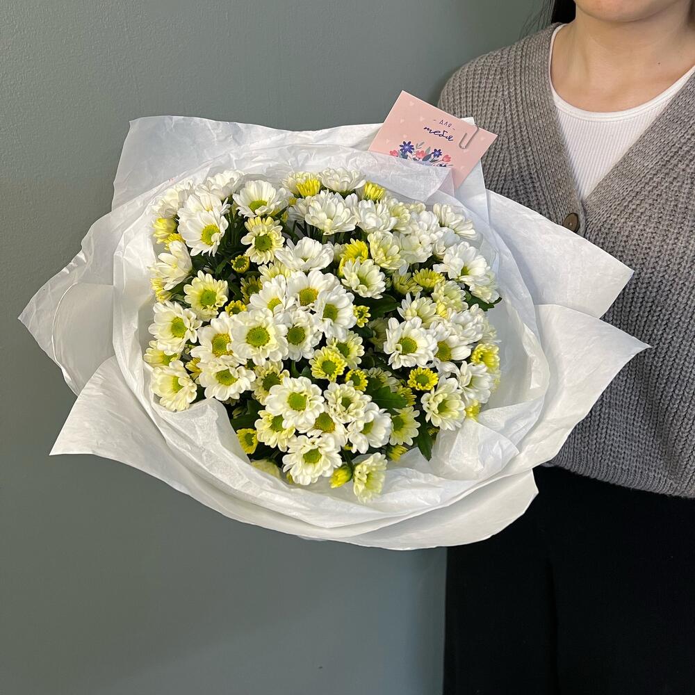 Хризантема Сантини – 7 шт.Открытка – 1 шт.Упаковка дизайнерская – 1 шт.