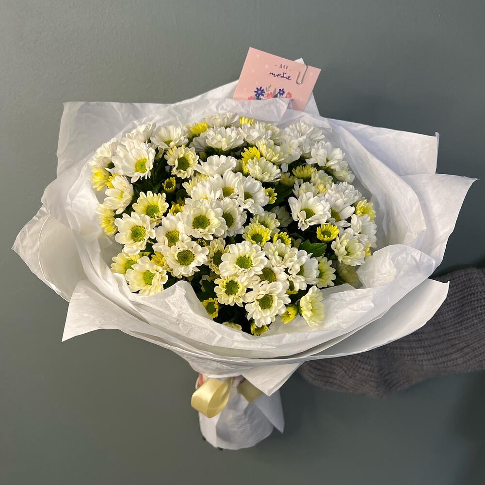 Букет кустовой хризантемы в упаковке