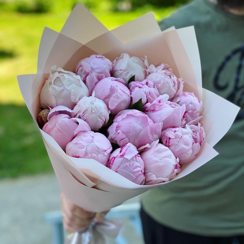 Лента – 1 шт.Пион Сара Бернар – 15 шт.Упаковка дизайнерская – 4 шт.