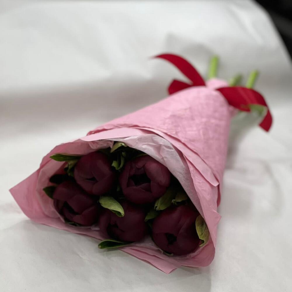 Лента – 1 шт.Пион Ред Шарм – 5 шт.Упаковка – 2 шт.