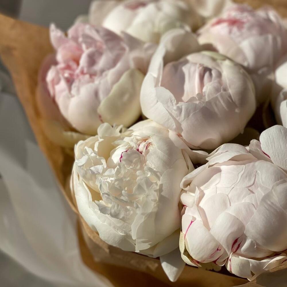 пионы белые – 7 шт.Подарочная упаковка – 1 шт.Средство для продления жизни цветов – 1 шт.