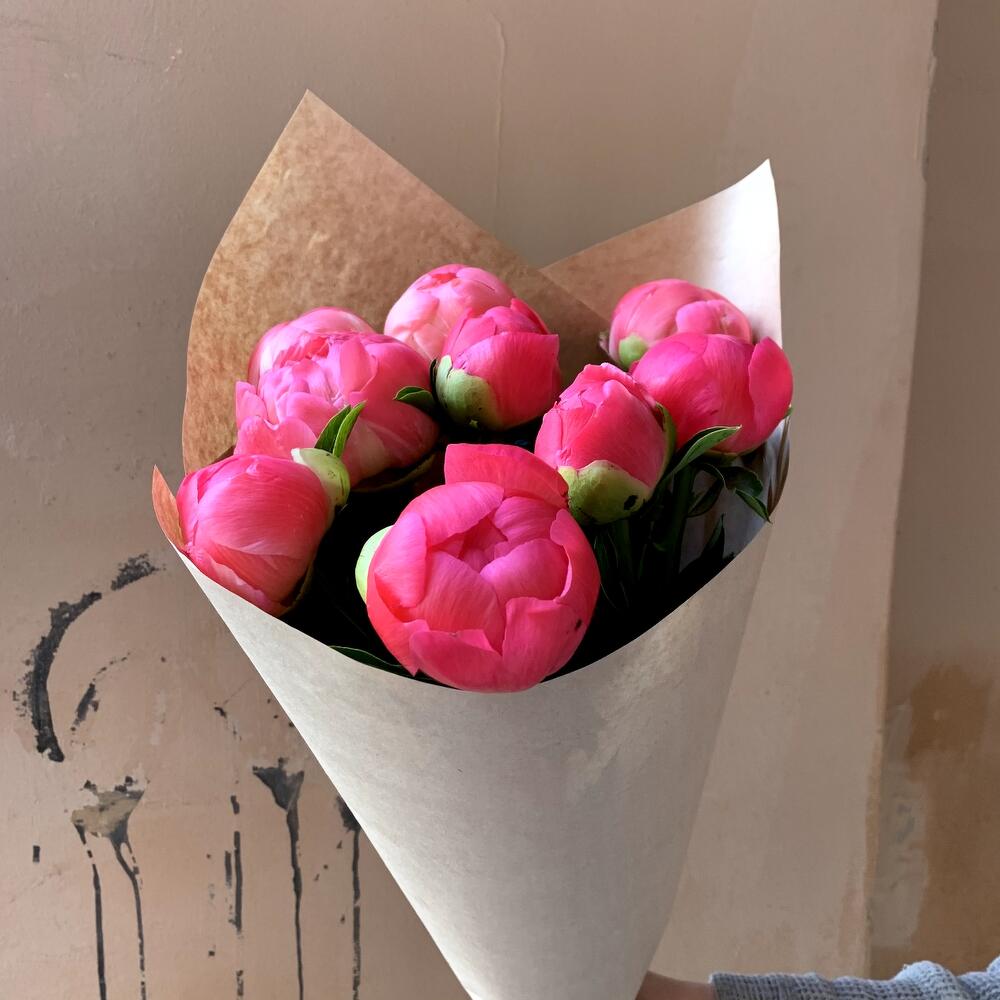 Коралловые пионы в крафте 9 шт