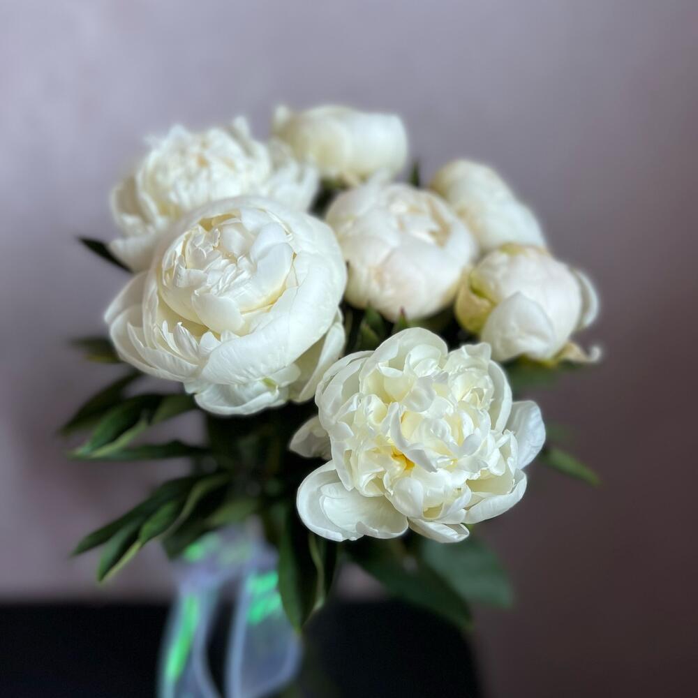 Пион – 7 шт.Атласная лента – 1 шт.