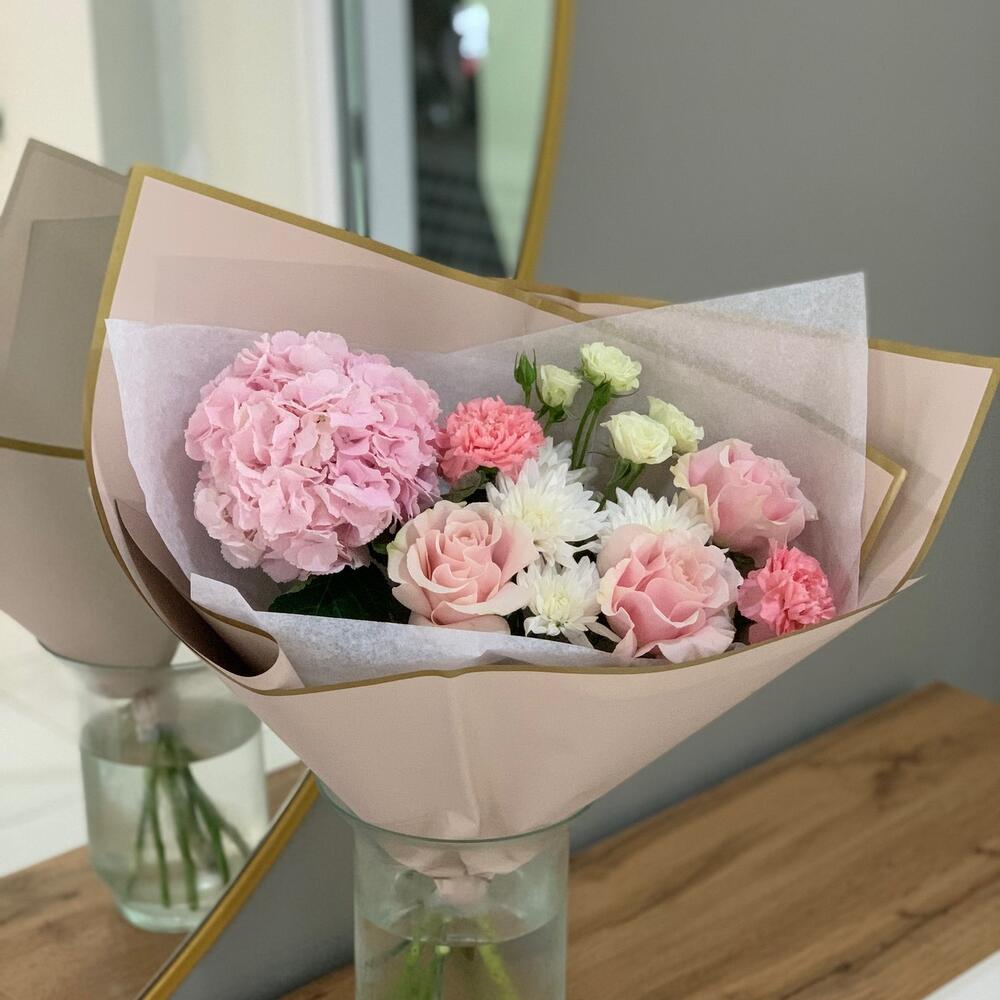 Гвоздики, Кустовые розы, Пионовидные розы, Розы