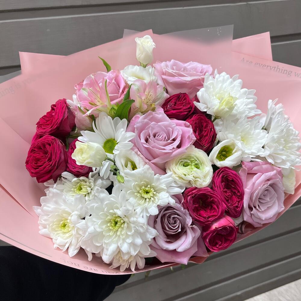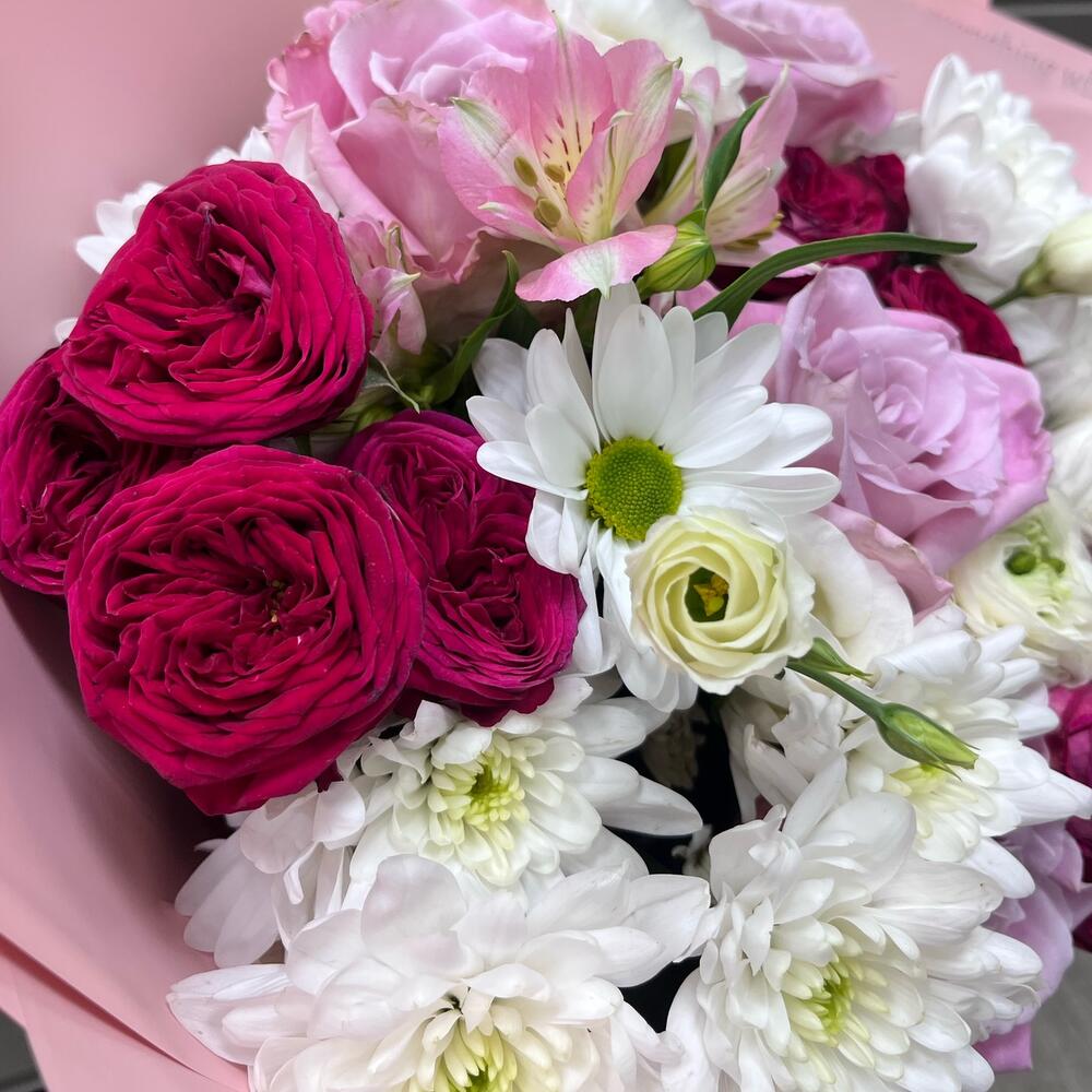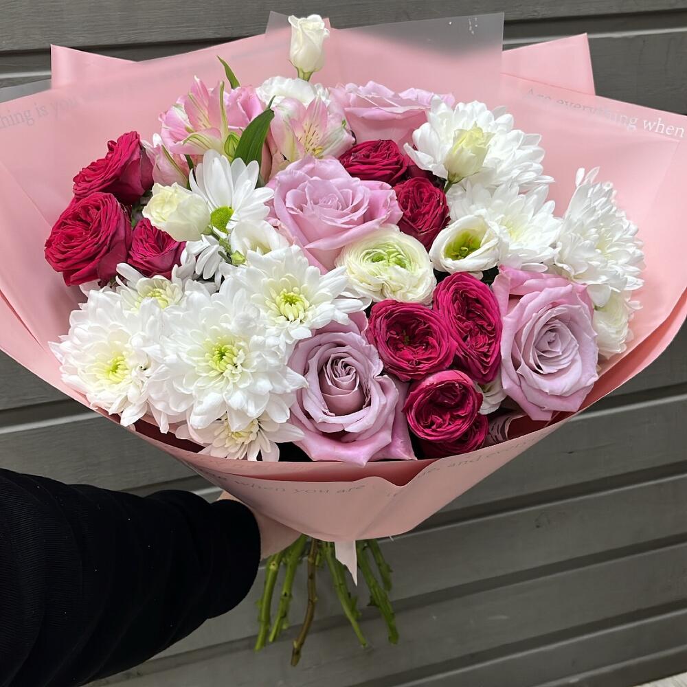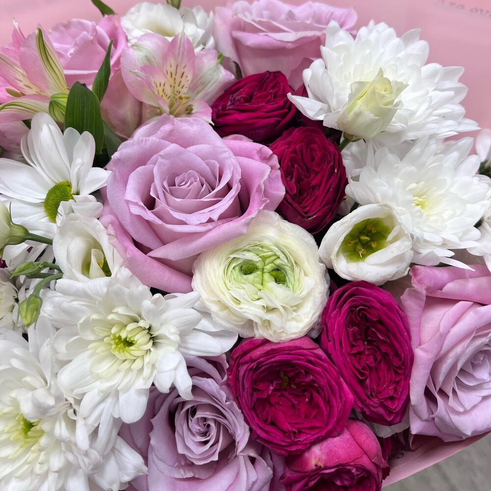Категорий: Альстромерии, Кустовые розы, Лизиантусы, Розы, Хризантемы