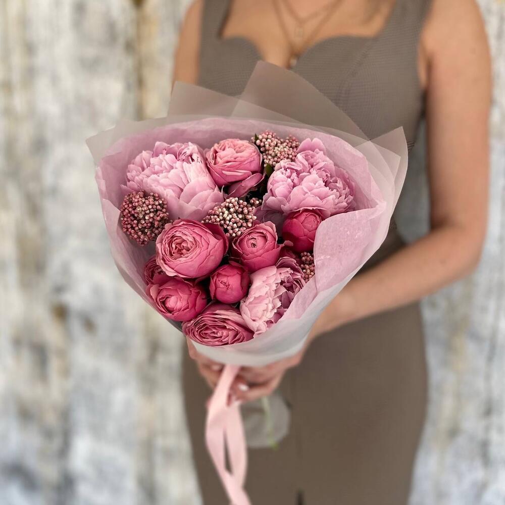 Букет из пионов и роз