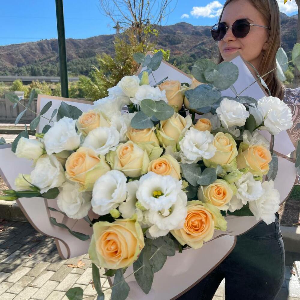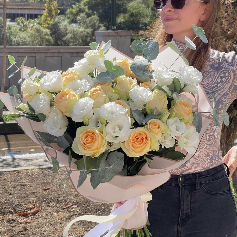 Авторский микс из розы и эустомы. Доставка цветов в Тбилиси.