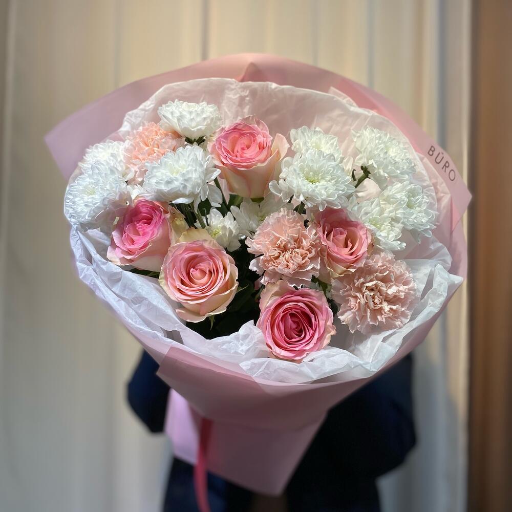 Гвоздики, Лизиантусы, Розы, Тюльпаны