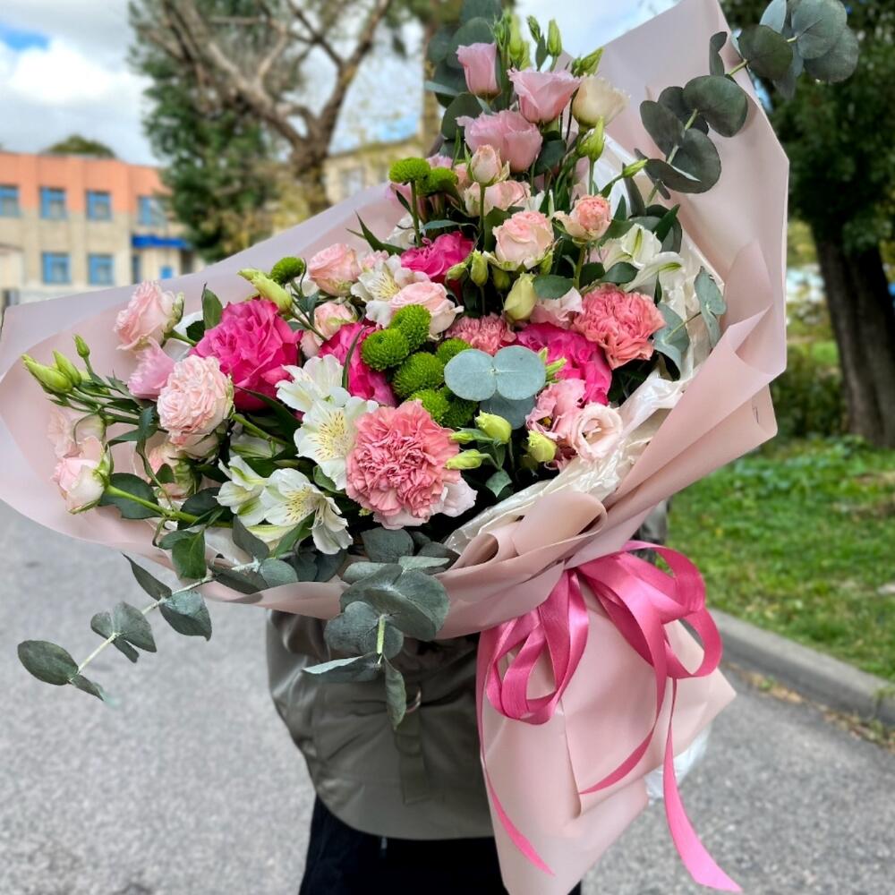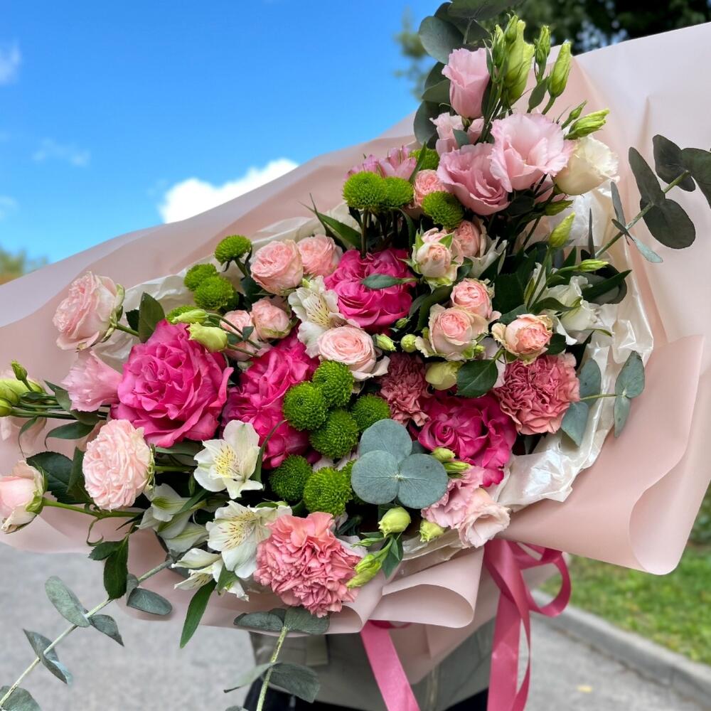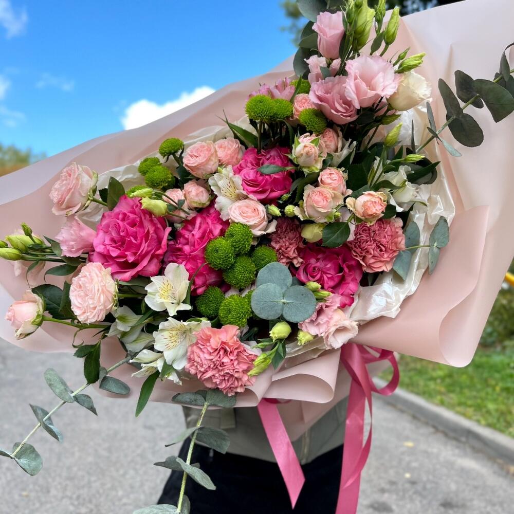 Гвоздики, Кустовые розы, Лизиантусы, Пионовидные розы, Розы