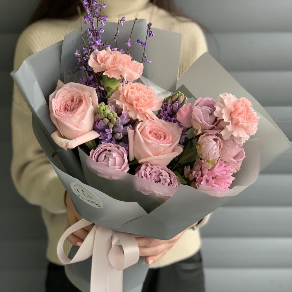 Гвоздики, Кустовые розы, Лизиантусы, Пионовидные розы, Розы