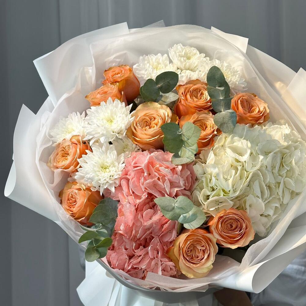Кустовые розы, Лизиантусы, Пионы, Розы, Хризантемы
