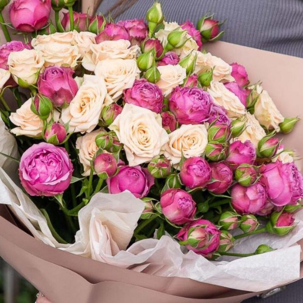 Гвоздики, Кустовые розы, Лизиантусы, Пионовидные розы, Розы