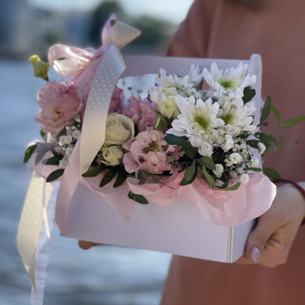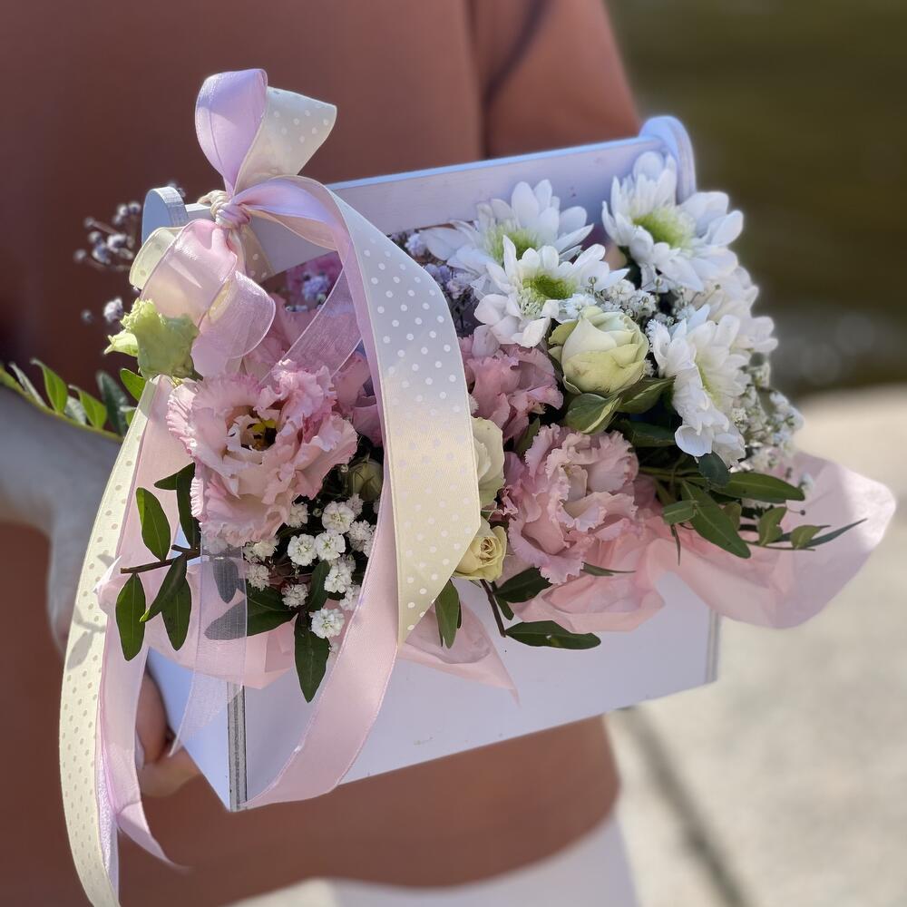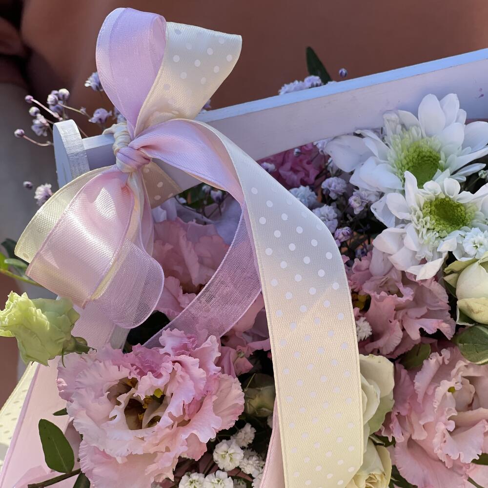 "Атлас☁️" - цветочная композиция с зефиром в деревянном ящике