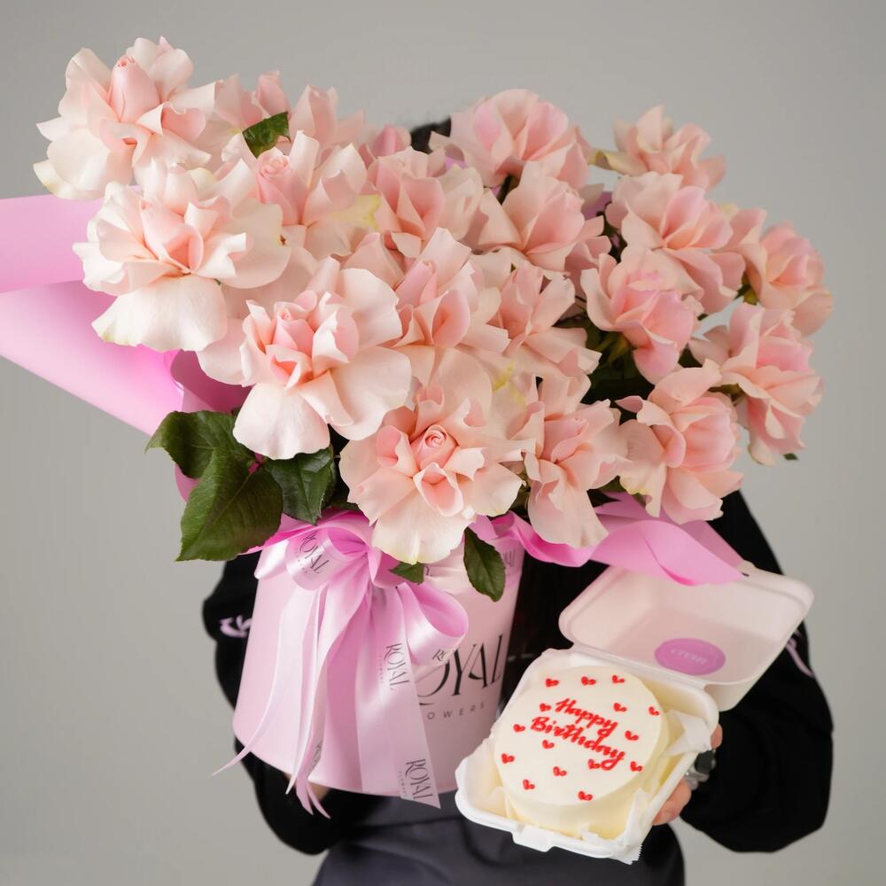 Комбо 19 роз и бенто тортик