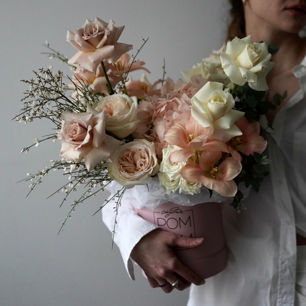 “В твоих глазах”: нежная шляпная коробка с французскими розами
