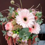 Альстромерия – 2 шт. Маттиола – 3 шт. Эвкалипт – 1 шт. Амарант – 1 шт. циперус папирус – 2 шт. Гербера – 1 шт. Ваза – 1 шт. Роза – 3 шт.