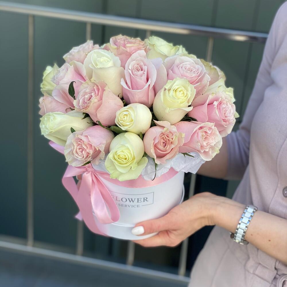Коробка из розовых и белых роз !