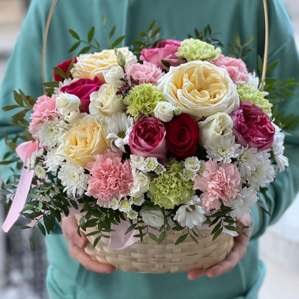 Метки: от 5000 руб, цветы в корзине
