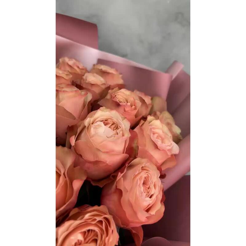 Пионовидная роза кахала – 25 шт.Упаковка дизайнерская – 5 шт.Лента атласная – 2 шт.