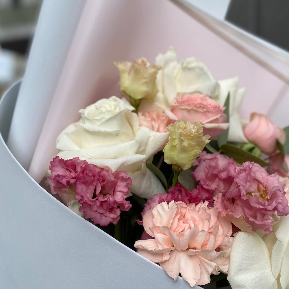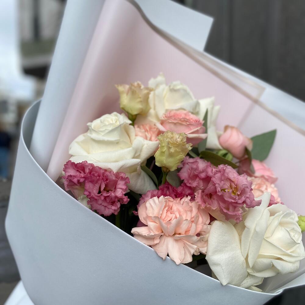 Гвоздики, Кустовые розы, Лизиантусы, Пионовидные розы, Розы