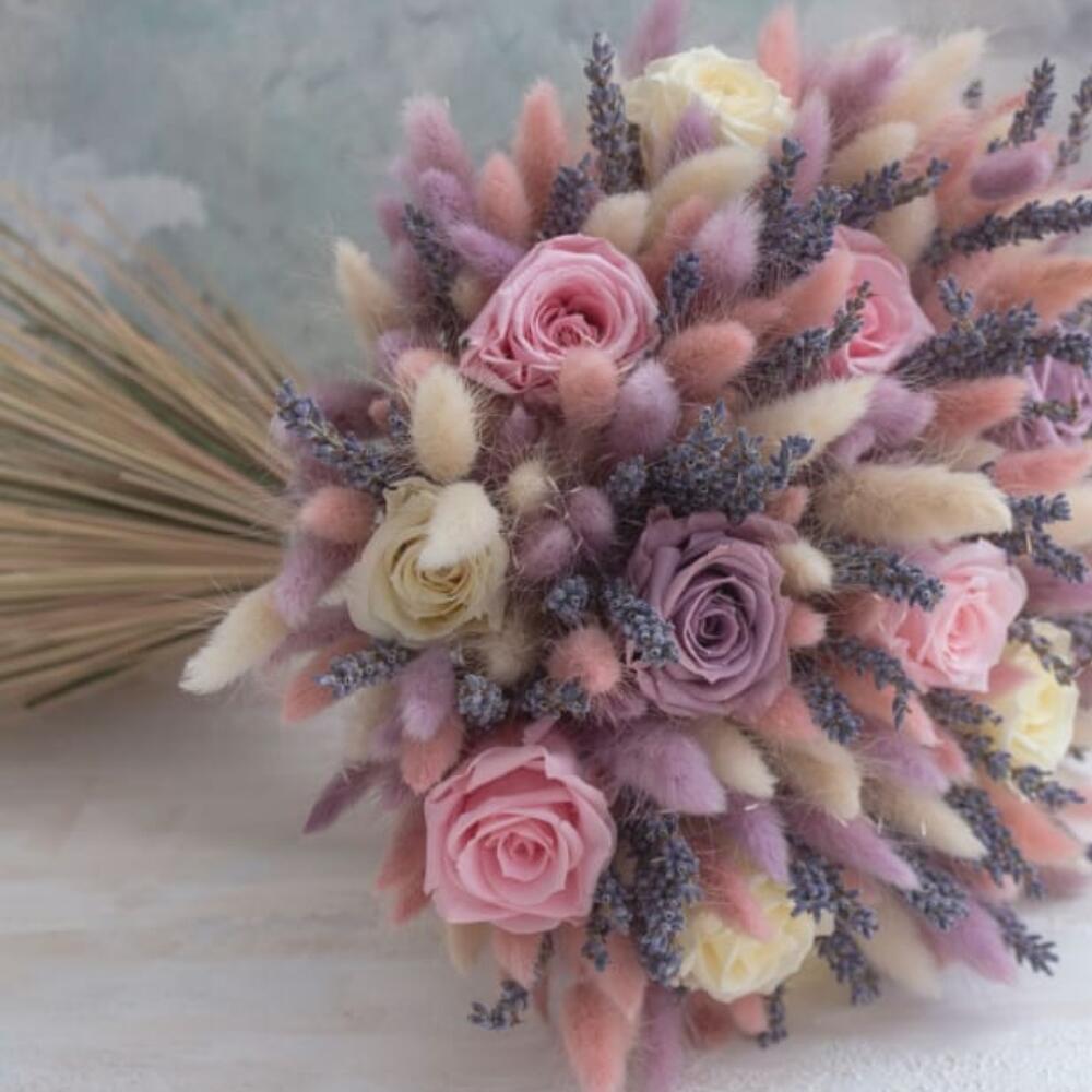 Розы с лавандой и лагурусом