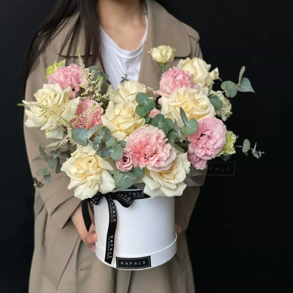 Роза голландская 60 см – 7 шт. астильба (голландия) – 2 шт. лизиантус (израиль) – 4 шт. эвкалипт (голландия) – 2 шт.