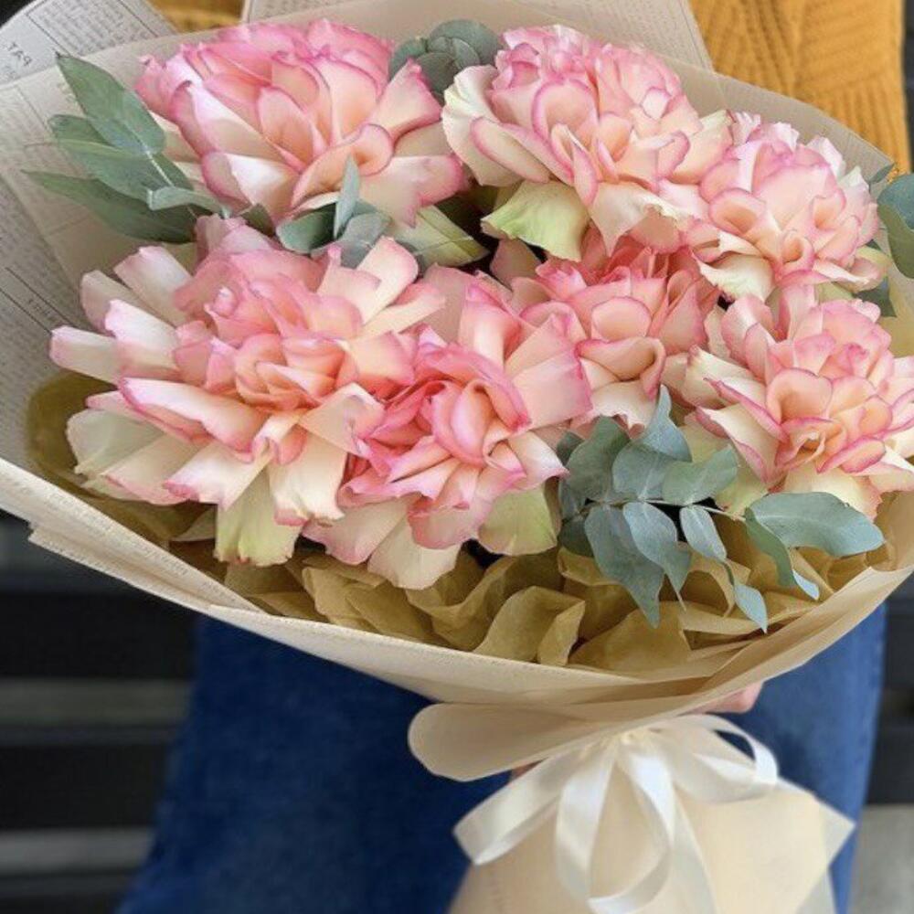 Гвоздики, Лизиантусы, Розы, Тюльпаны