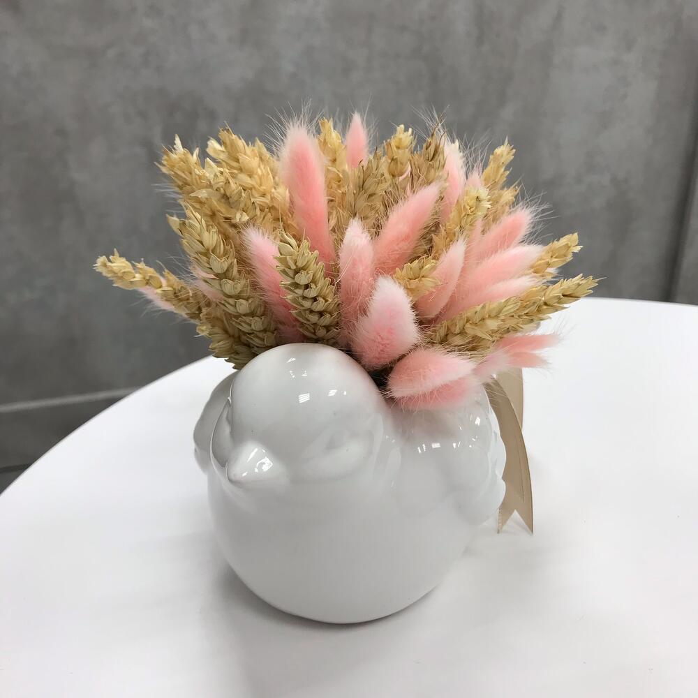 Композиция в керамической птичке из сухоцветов